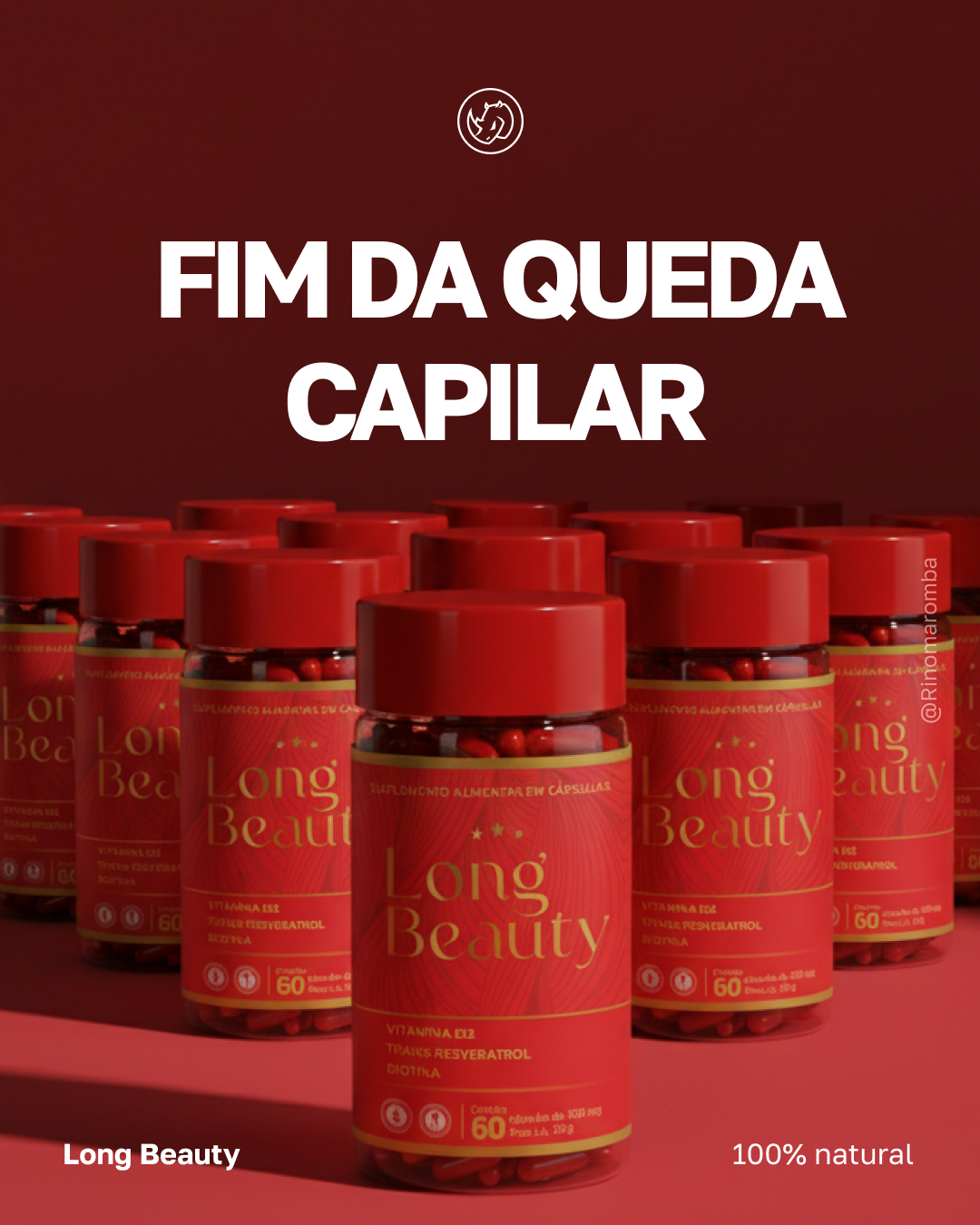 Fim da queda capilar! O Long Beauty é um suplemento 100% natural repleto de vitaminas e ingredientes puros que proporciona um crescimento capilar de alta qualidade, combate o ressecamento da pele e também promove o fortalecimento e crescimento das unhas.